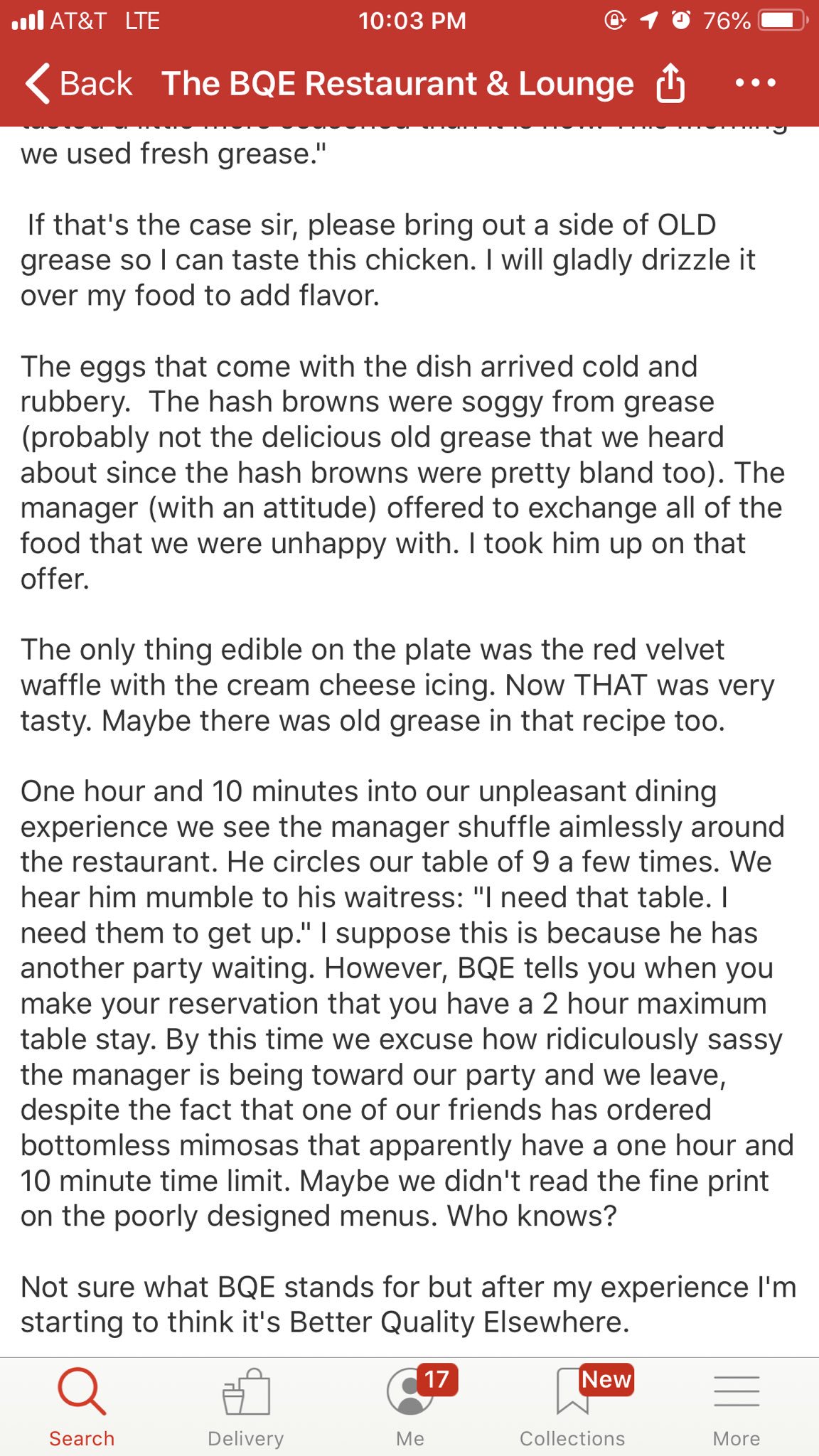 A YELP REVIEW FOR BQE IN ATL